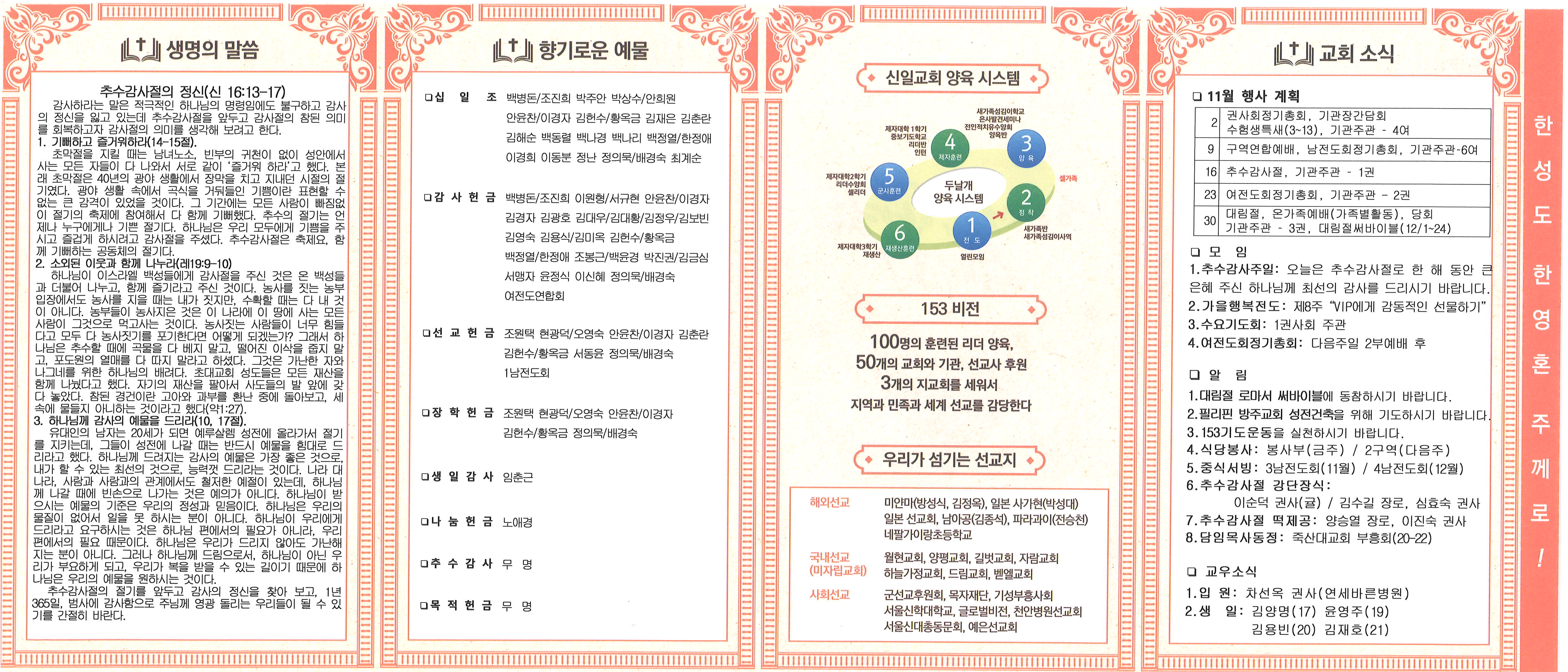 11월 16일 - 추수 감사 주일