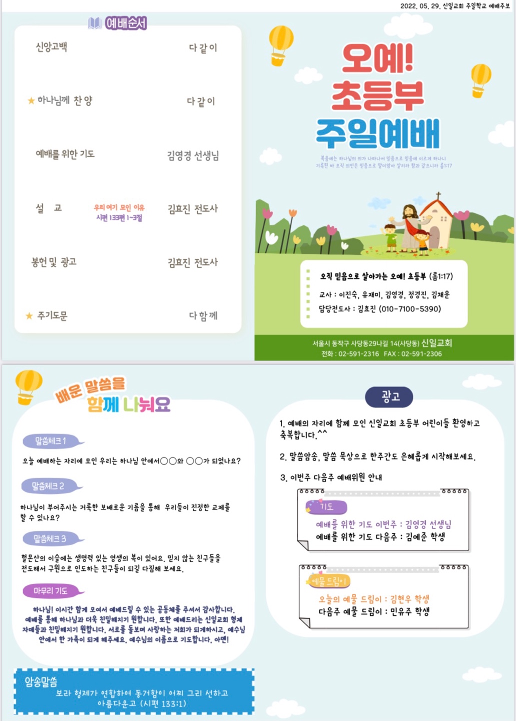 5월 29일 초등부 주보