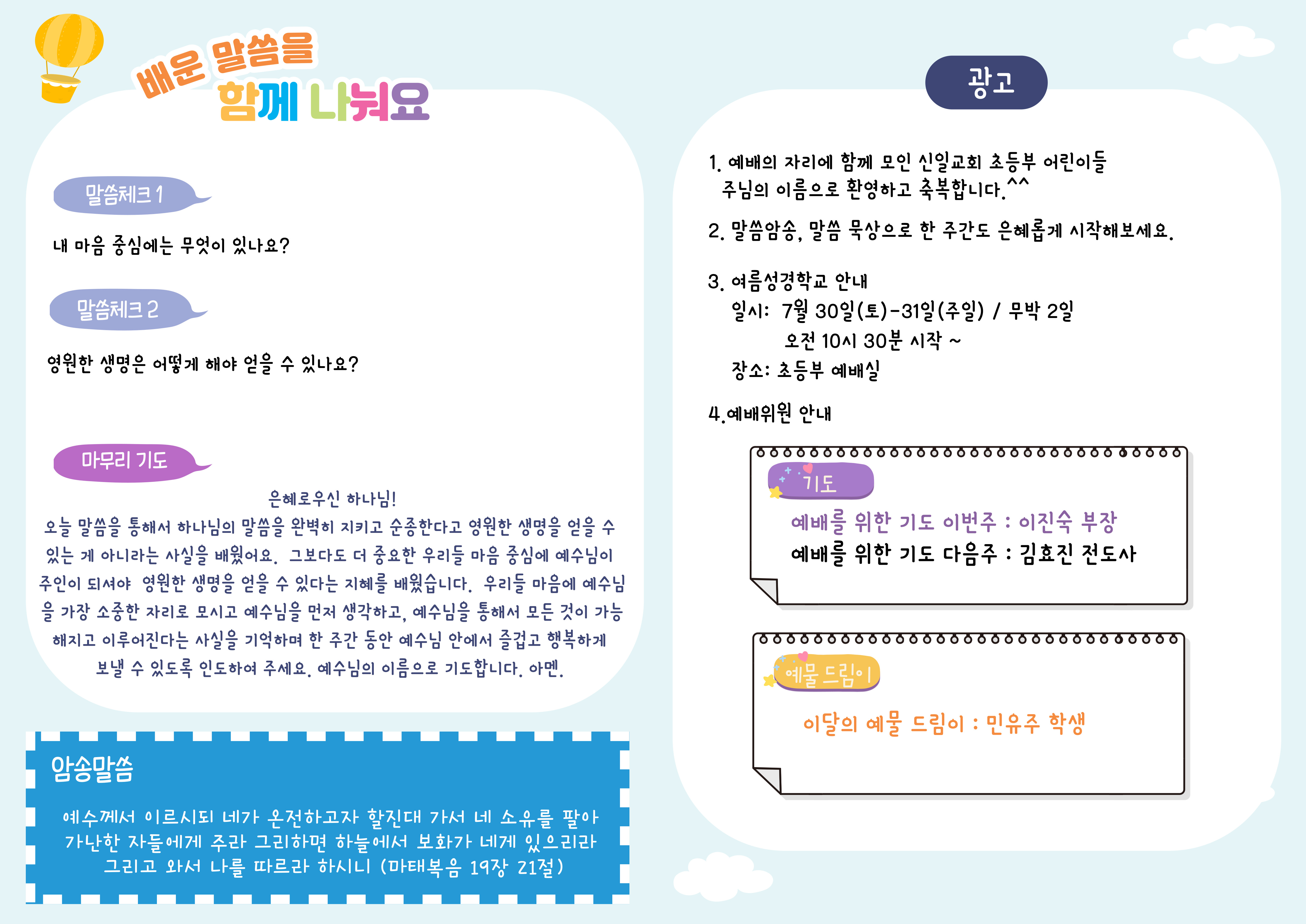 6월 19일 초등부 주보
