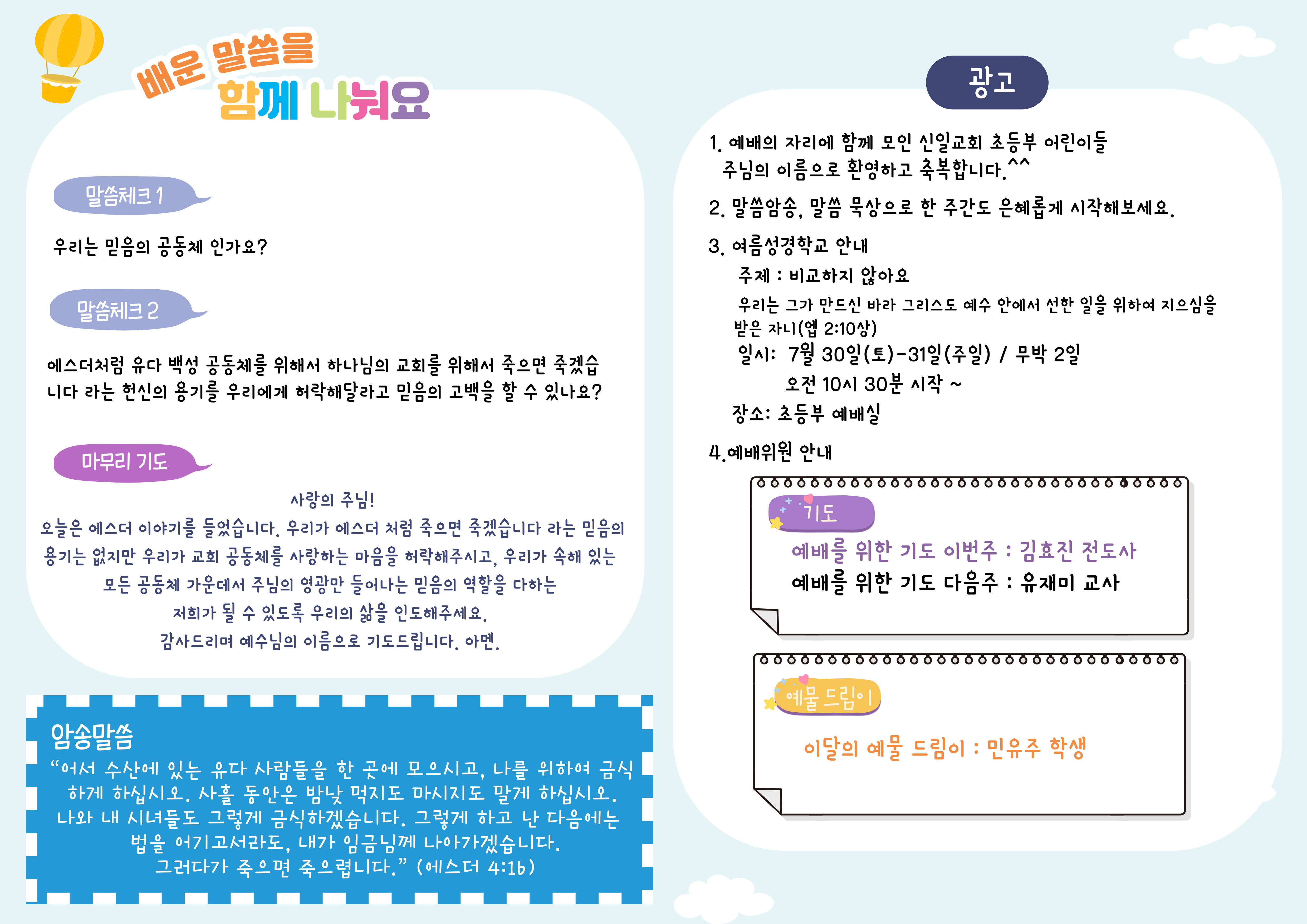 6월 19일 초등부 주보